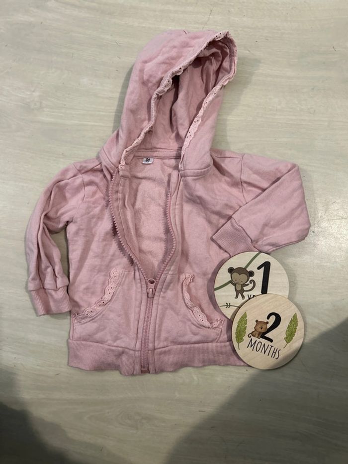 Gilet avec capuche rose Marque inconnu #habits #vetements #veste #pantalon #gilet #leggings #tshirt #pull #12mois