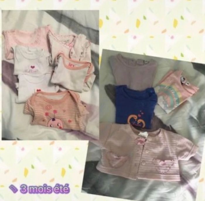 Lot 3 mois été ; - 3 hauts manches courtes - 1 gilets sans manches - 6 bodies manches courtes