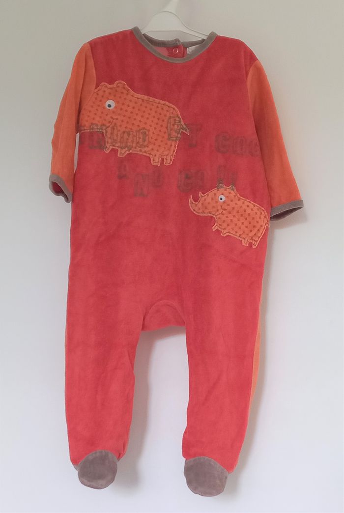 pyjama 1 pièce en coton. Boutons pressions au dos. Motif "rhinocéros" devant