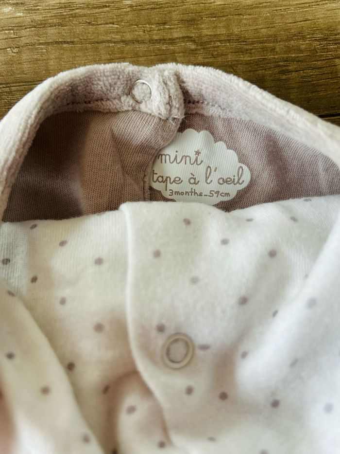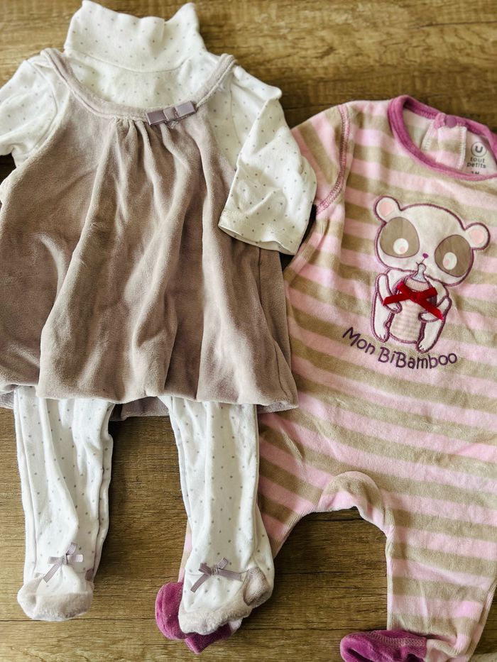 Lot fille 3 mois comprenant : - 1 Ensemble Tape à l'oeil 3 mois 59 cm comprenant une robe et une combinaison col roulé et chaussons intégrés. Marque TAO - 1 pyjama 3 M 60 cm. Marque Utoutpetits Possibilité de retrouver et d’acheter les articles à l’unité dans mon dressing. #lotfille3mois