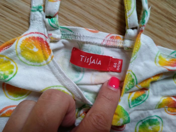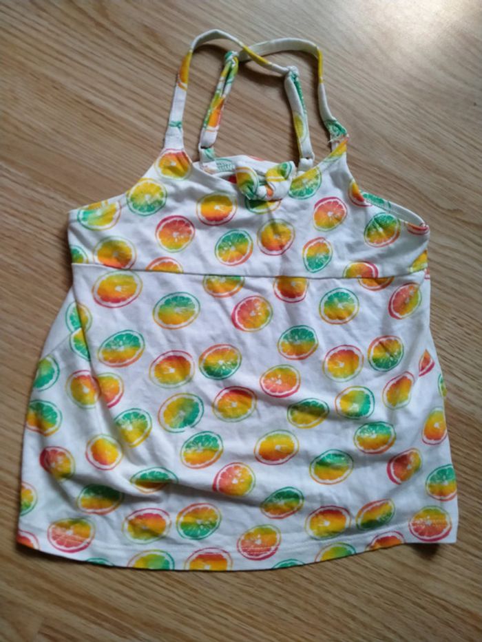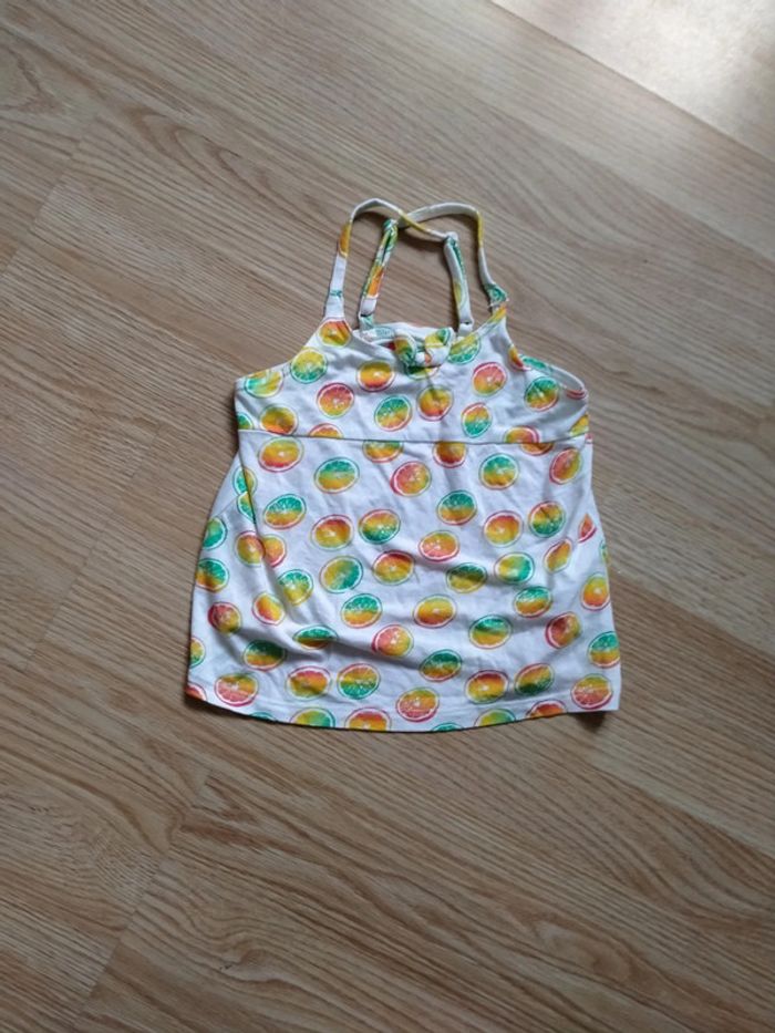 Débardeur blanc avec citrons. Tissaia. Taille 4 ans Bretelles fines réglables. Croisées dans le dos. Citrons multicolores. Très bon état 1€50 Lavé avec lessive bébé Maison non fumeur D'autres articles de cette taille sur #ptitesev63fille4ans