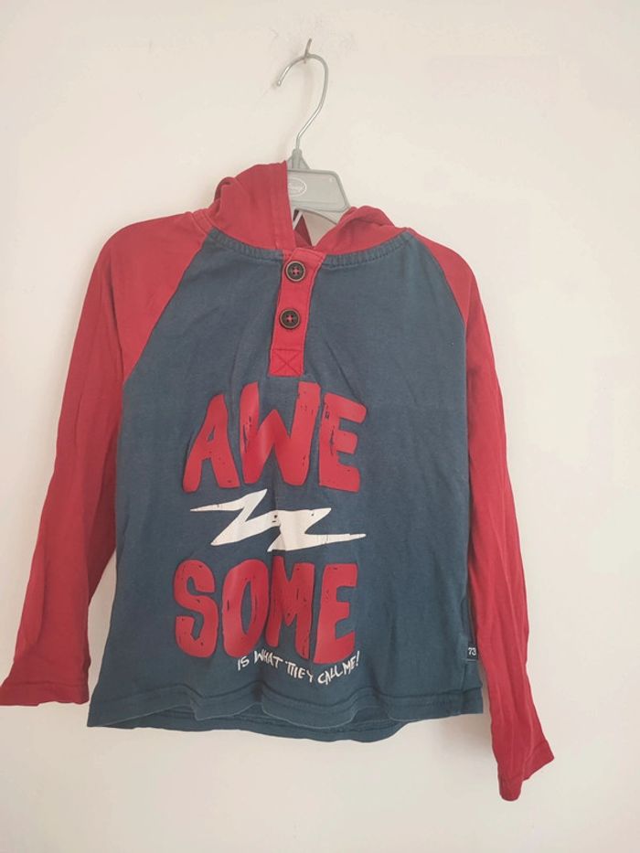 T-shirt manches longues effet sweet avec une capuche En bon état 4/6 ans Marque lupilu #chapiti4ansgarcon #chapiti5ansgarcon #chapiti6ansgarcon
