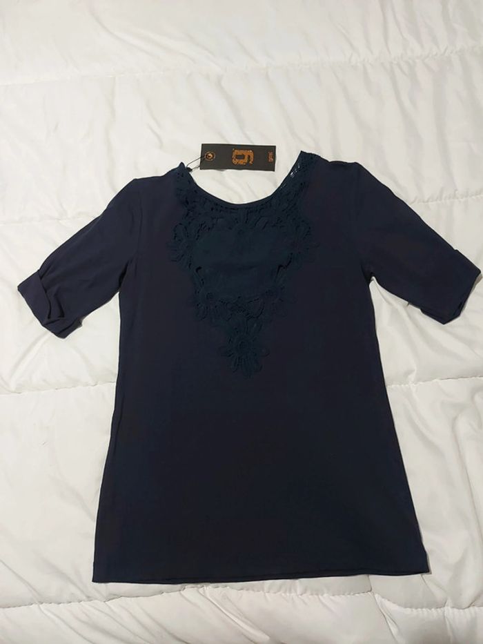 Tee-shirt de couleur marine petit détaille de dentelle sur le dos, taille M neuf Valeur 31.50 €