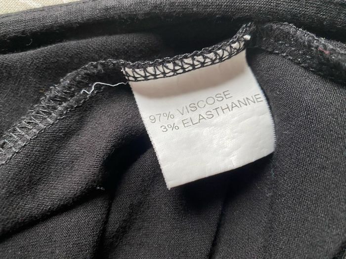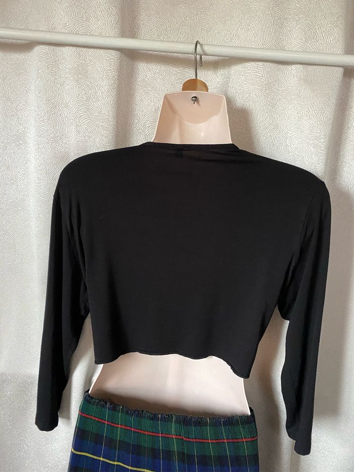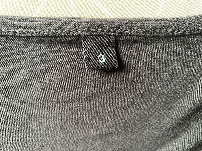 Gilet court jersey noir ( comme les t-shirt) taille 3 Carrure 40,5 cm Aisselle à aisselle 49 cm Longueur 36,5 cm Parfait état 97 % viscose 3 % elasthane