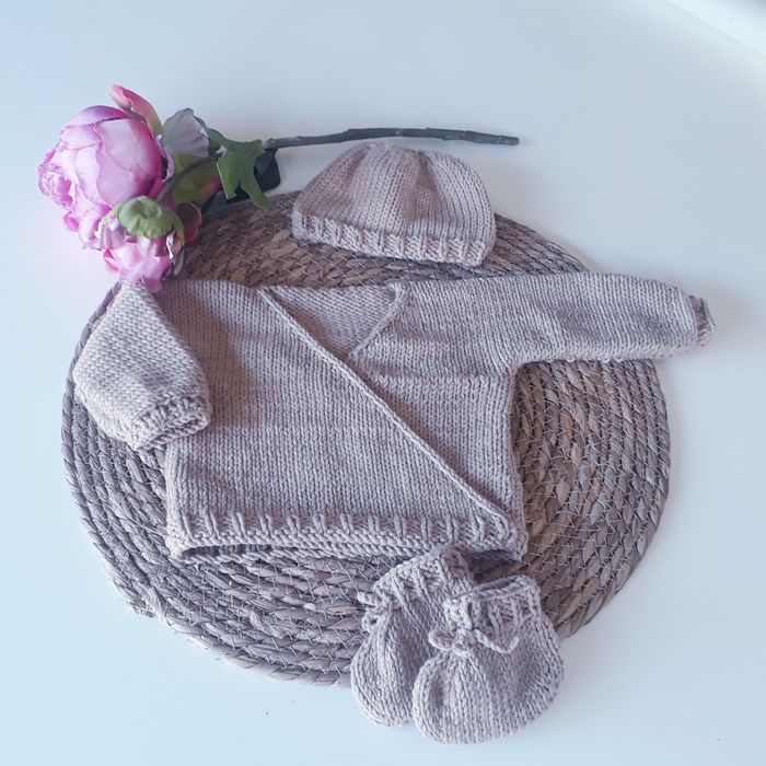 Vêtement layette brassière gilet kimono cache-coeur 30 % laine  tricoté main bébé naissance - photo numéro 1