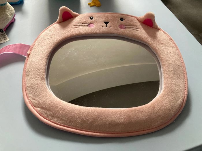 Présente quelques griffes sur le miroir mais les tissus reste en excellent état Convient sur n’importe quel siège grâce à ses 2 systèmes de fixations