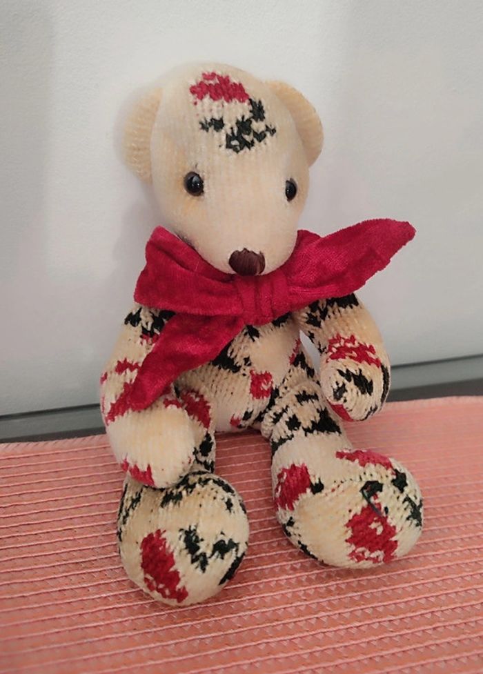 Voici un adorable ours en peluche. Il est très doux et moelleux au toucher, parfait pour câliner. Ses yeux noirs brillants et son nœud papillon rouge lui donnent un air espiègle et charmant. Cet ourson fera sûrement le bonheur d'un enfant ou d'un collectionneur. N'hésitez pas à me contacter si vous avez des questions ! - Ours en peluche vintage - hauteur 21 cm - Doux et moelleux - intérieur corps billes