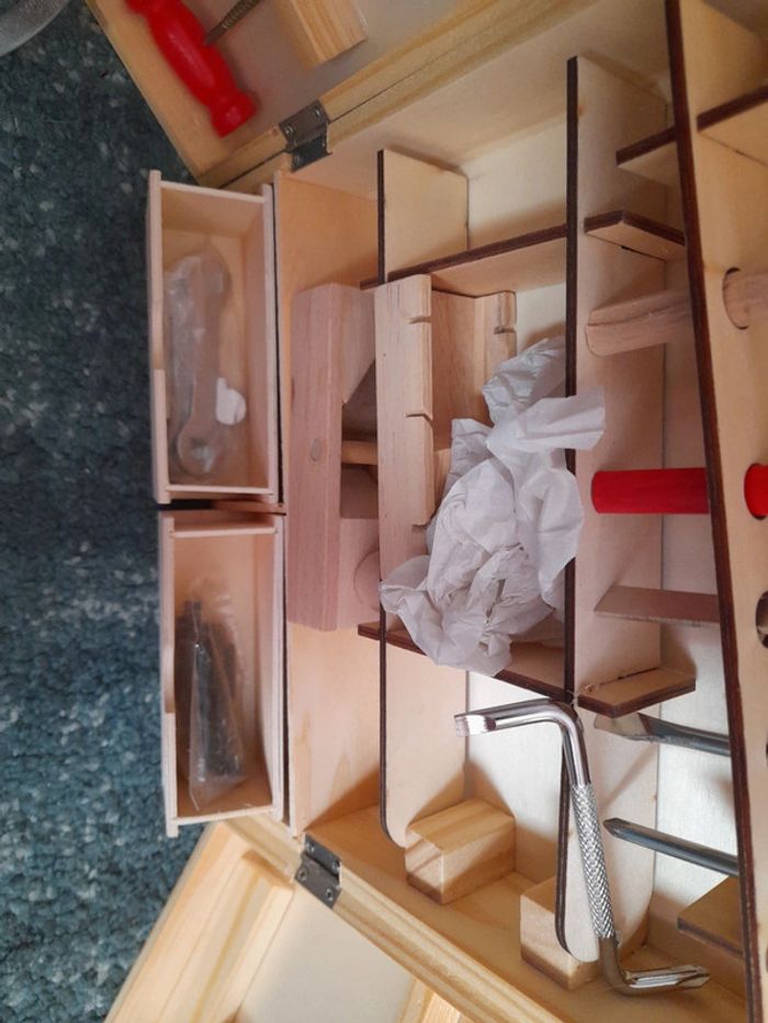 J'ai commander cet établi pour mes enfants sur king jouet et je l'est reçu dans cet état, ont ne l'a jamais touché, j'ai essayé de contacter le service après vente mais trop compliqué à joindre. Je pense qu'ils m'ont envoyé leur dernier modèle en stock celui d'exposition.
