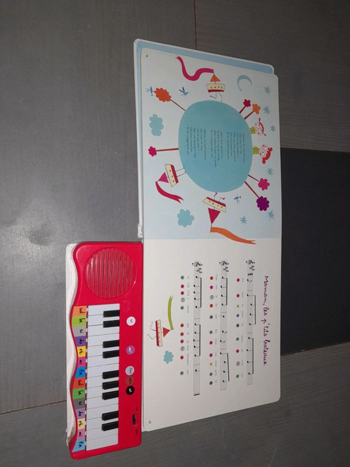 Bonjour !! Fonctionne. Le piano à été recollé plusieurs fois, reluire abîmer ainsi quelque petit défaut sur le livre. #livresteph86 #musiquesteph86 #auzousteph86 #comptinesteph86 #pianosteph86