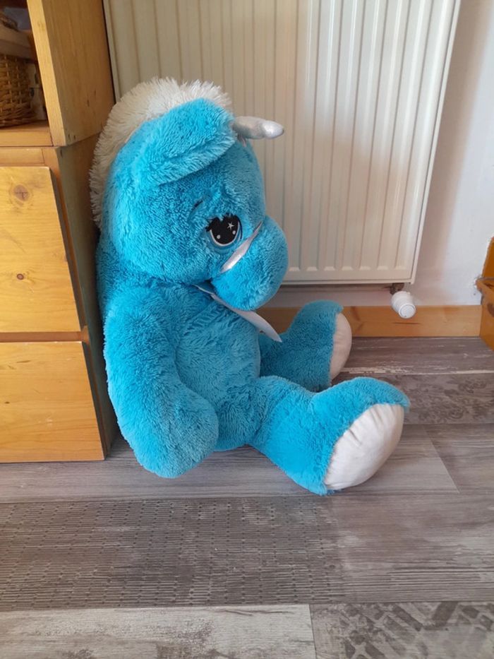 Bonjour !! Environ 90cm debout et 65cm assis #peluchesteph86 #licornesteph86