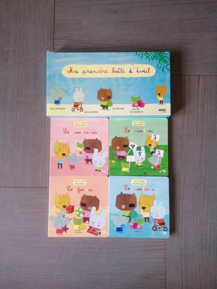 Bonjour !! Coin de la boîte un peu abîmer Complet Les 5 amis decouvrent: - les contraires - les nombres - les formes - les couleurs Auzou éveil #auzousteph86 #coffretsteph86 #eveilsteph86