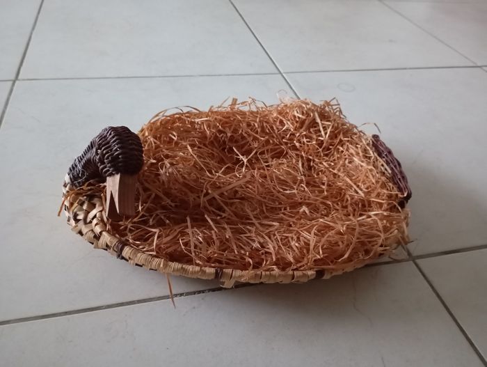 Corbeille canard avec de la paille décorative pour mettre des bocaux pour offrir ou pour s'en servir comme vide poche car la paille s'enlever Je pense que c'est du bambou 2 couleurs Dimension longueur 33 cm largeur 25 cm et hauteur 6 cm