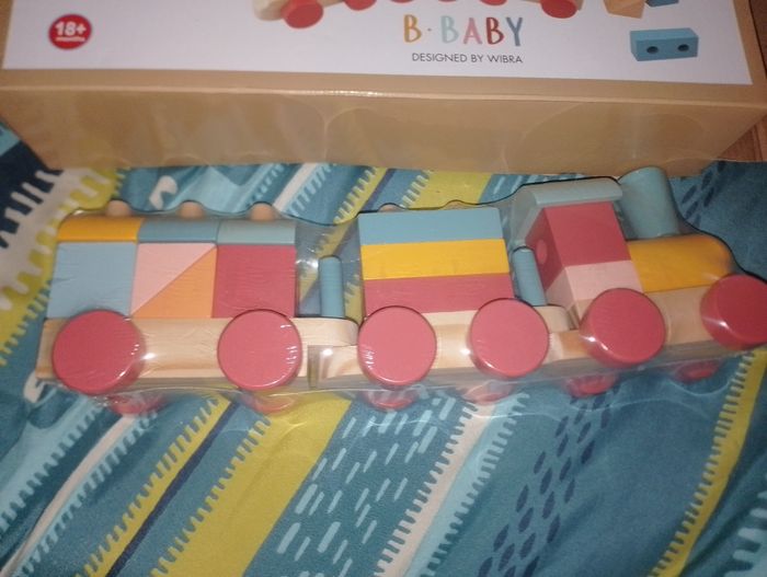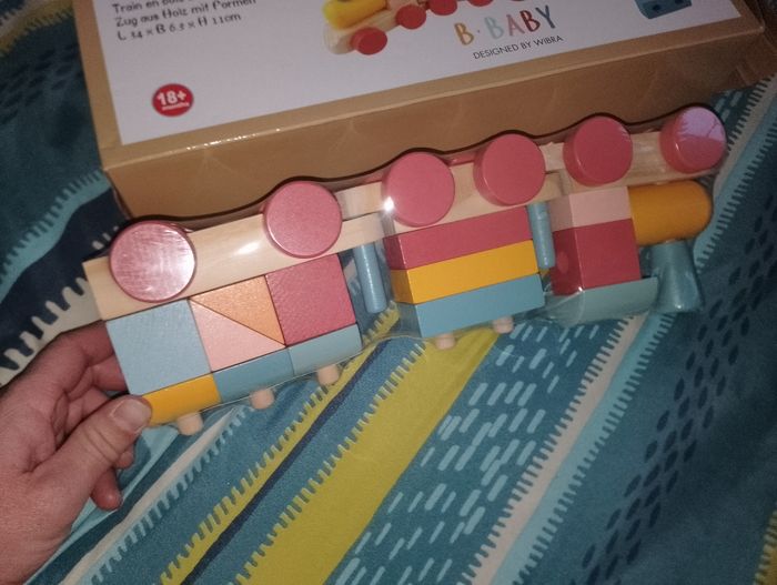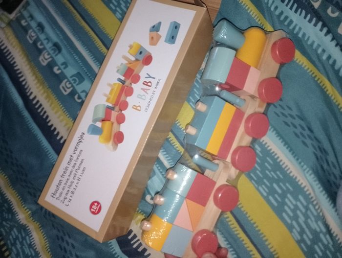 Train en bois avec des formes Neuf Le train est encore emballé dans du film plastique