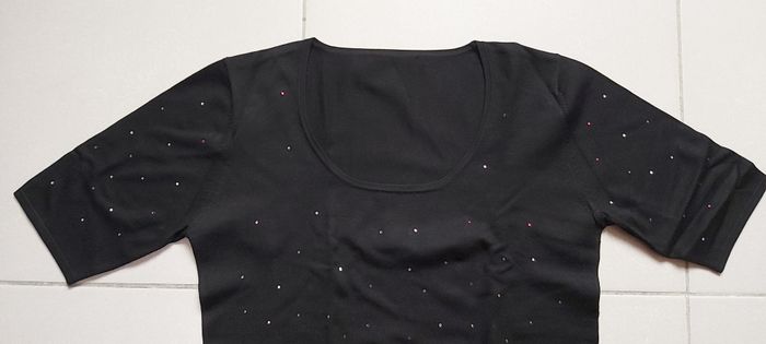 .Pull manche 3/4 Avec paillettes Pas d'étiquette de taille correspond à du XXL #carineddiXXLfemme