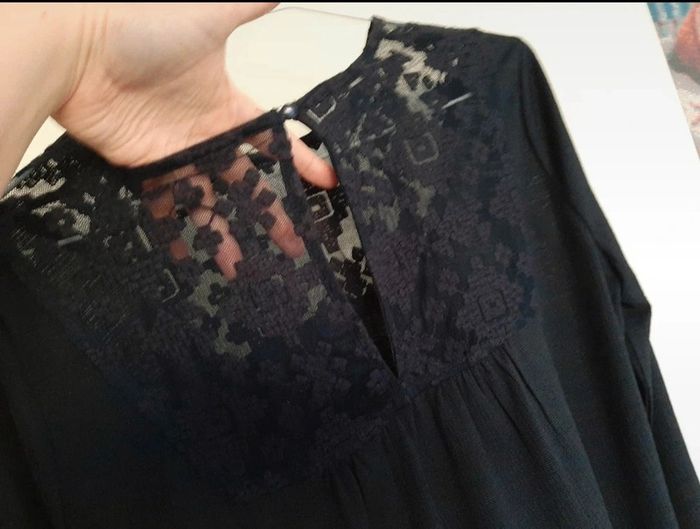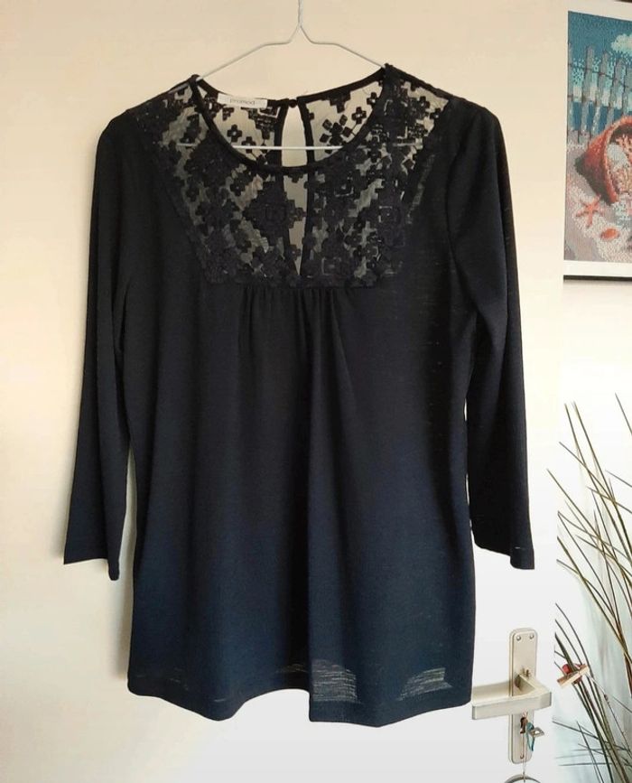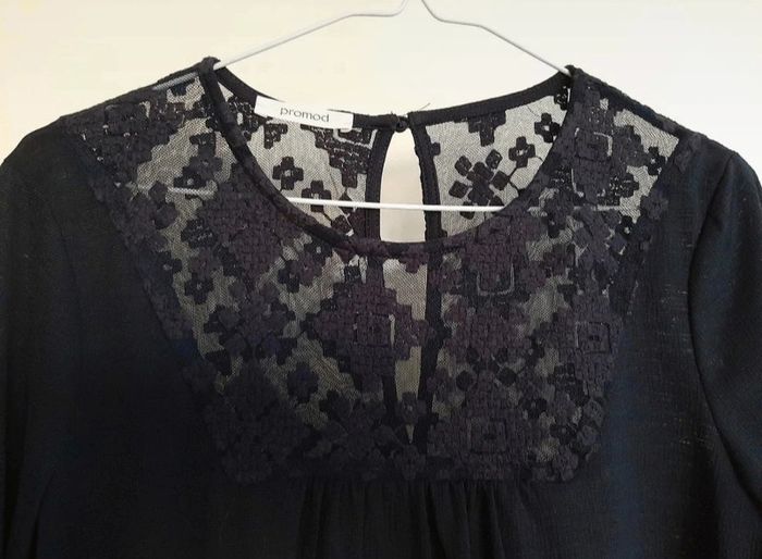 Jolie blouse Promod bleu marine avec un peu de dentelles. Jamais portée, taille M. Super chouette matière. Je la vends au prix de 20 euros. #TailleM38marine