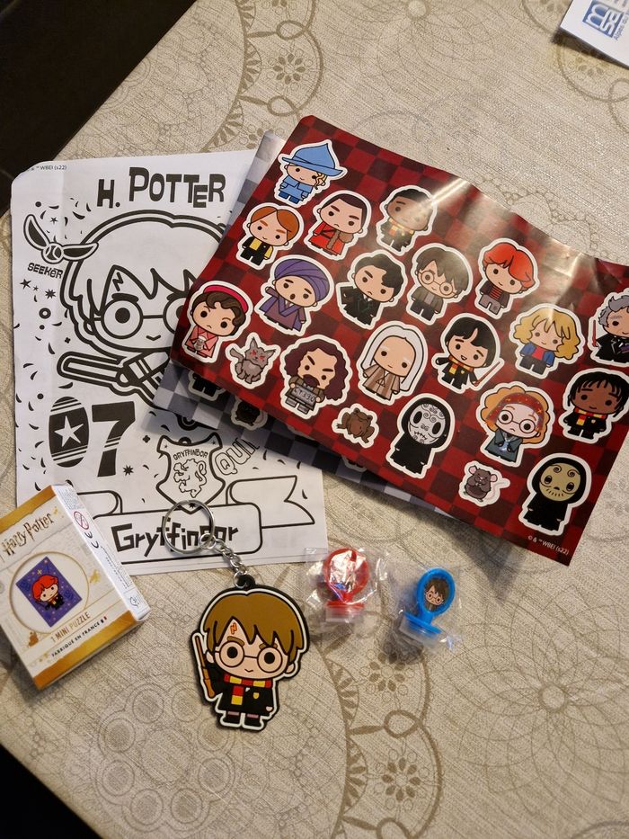 Lot Harry Potter avec coloriage, autocollants, tampon, porte clé, puzzles de 20 pièces