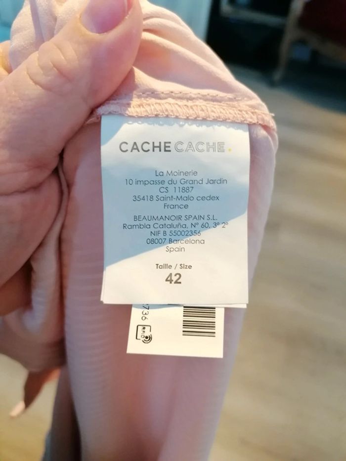 Bonjour, ce vends cette chemise manches courtes avec des nœuds rose de la marque cache cache taille 42 en très bon état.