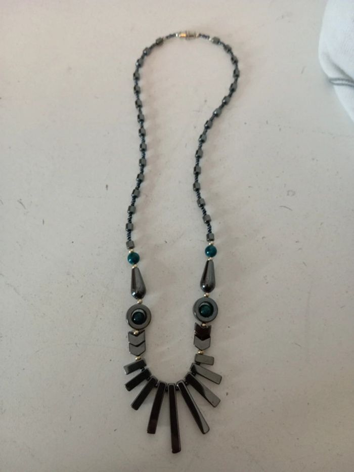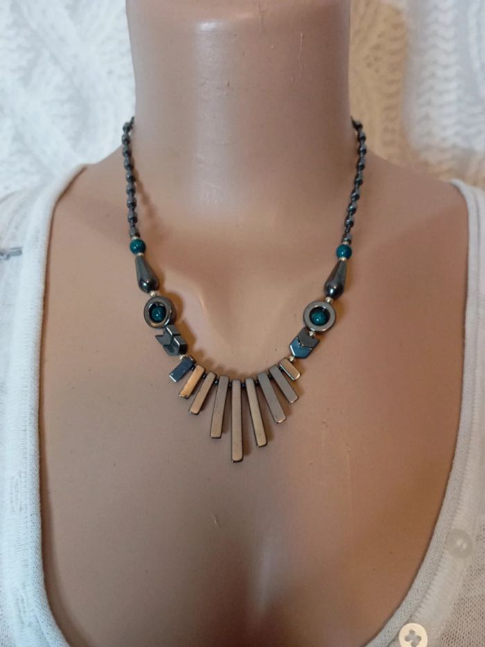 Superbe collier anthracite et pierres vertes - photo numéro 1