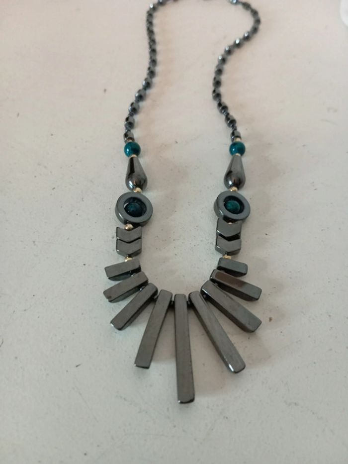 Superbe collier anthracite et pierres vertes - photo numéro 2