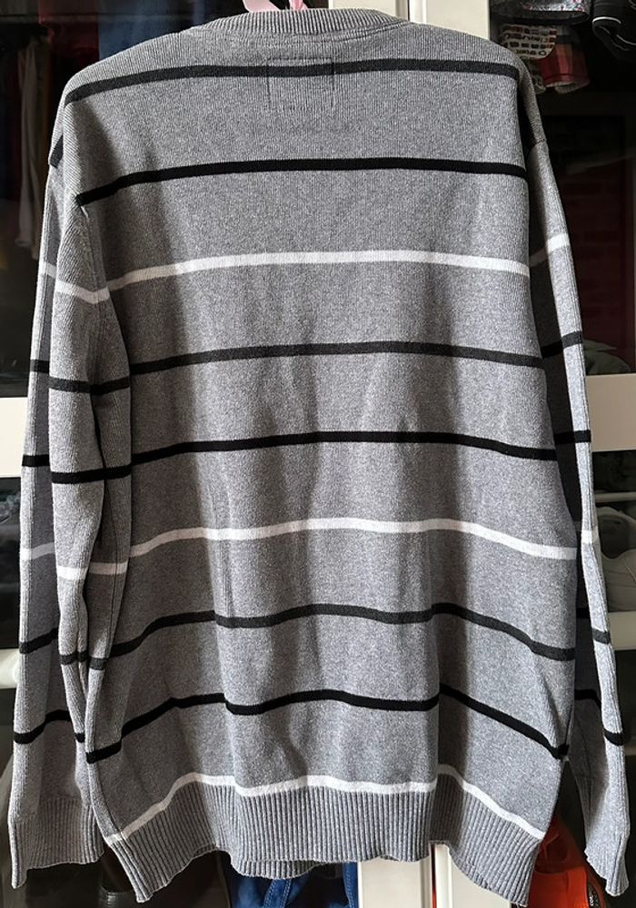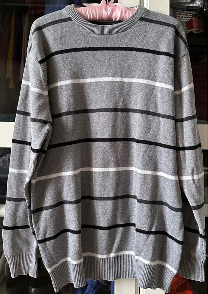 Pull gris chiné rayé noir et blanc. Très peu porté.