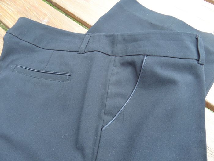 pantalon de soiree noir avec liseret le long des poches porte une seule fois.taille 44
