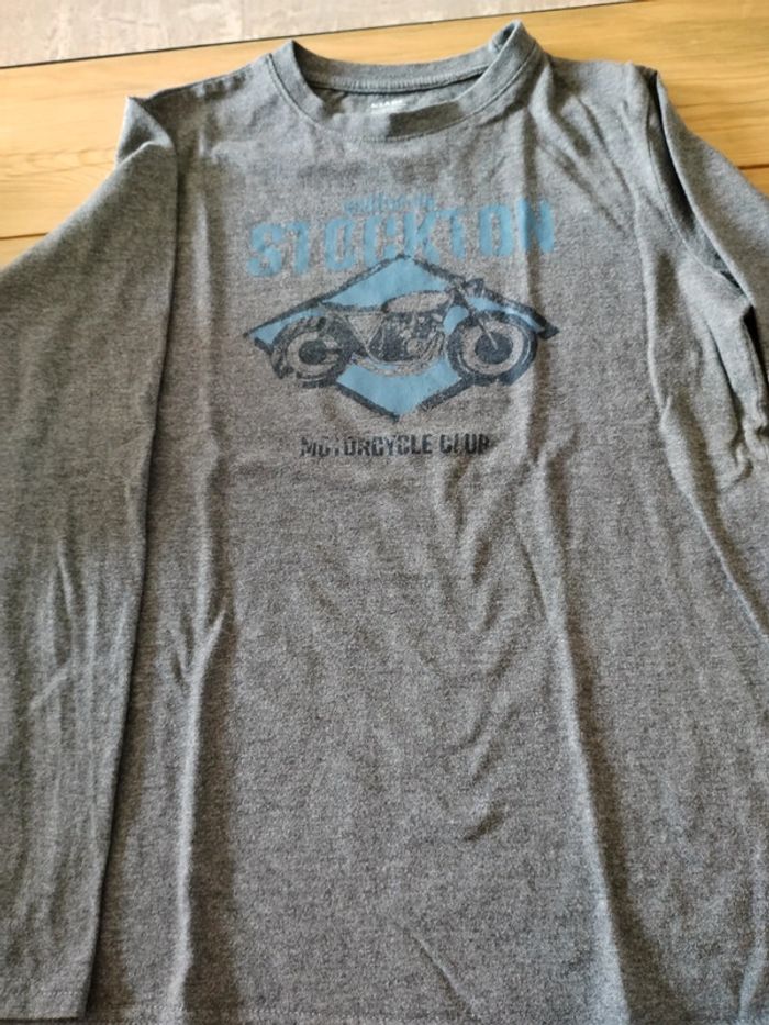 Tee shirt manches longues Couleur gris motif moto Très bon état Taille XXS/12 ans
