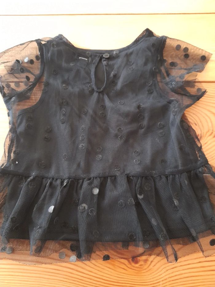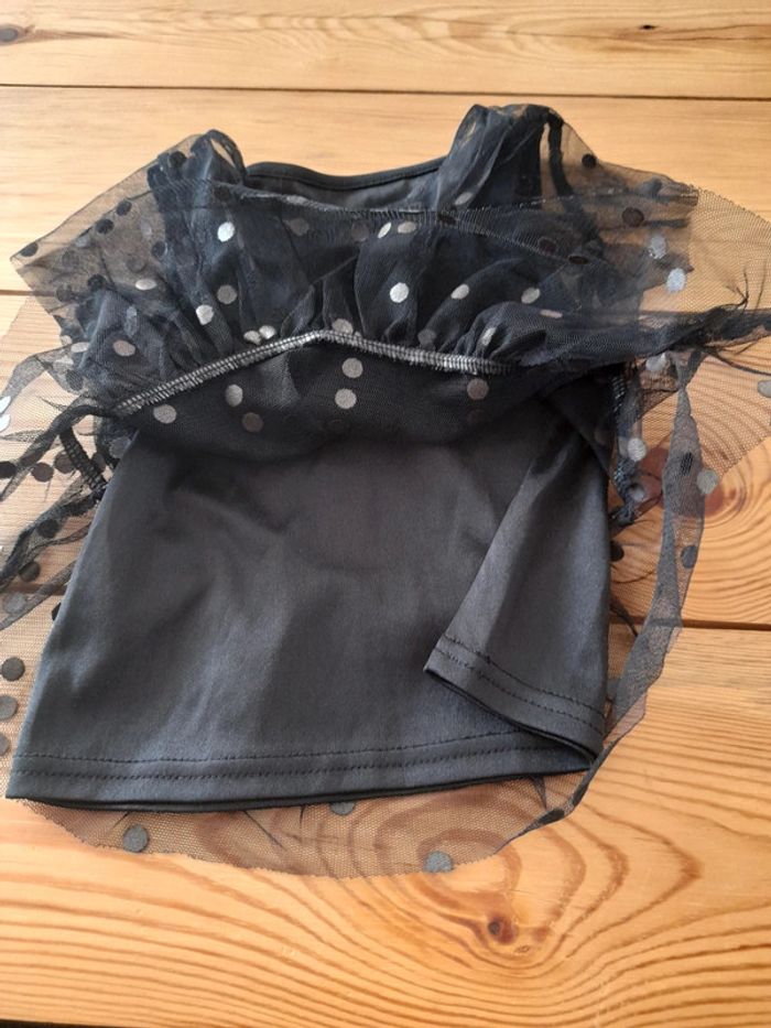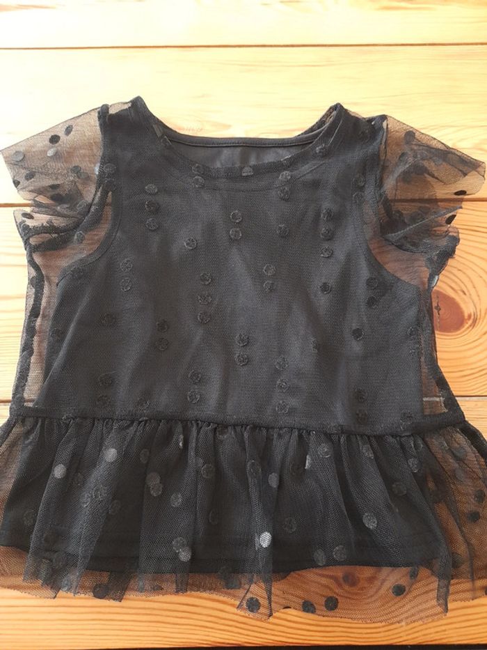 Tee-shirt manches courtes noir Débardeur noir + tulle noir a pois avec manches courtes accrochés ensemble Très bon état 3 ans