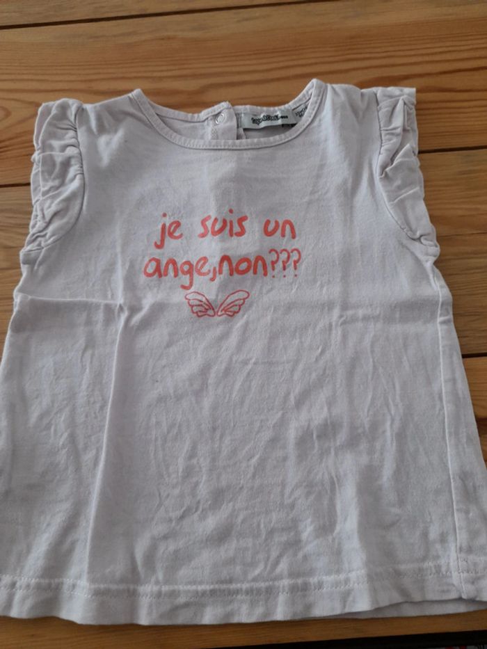 Tee-shirt sans manches Parme avec inscription je suis un ange non? Très bon état 23 mois