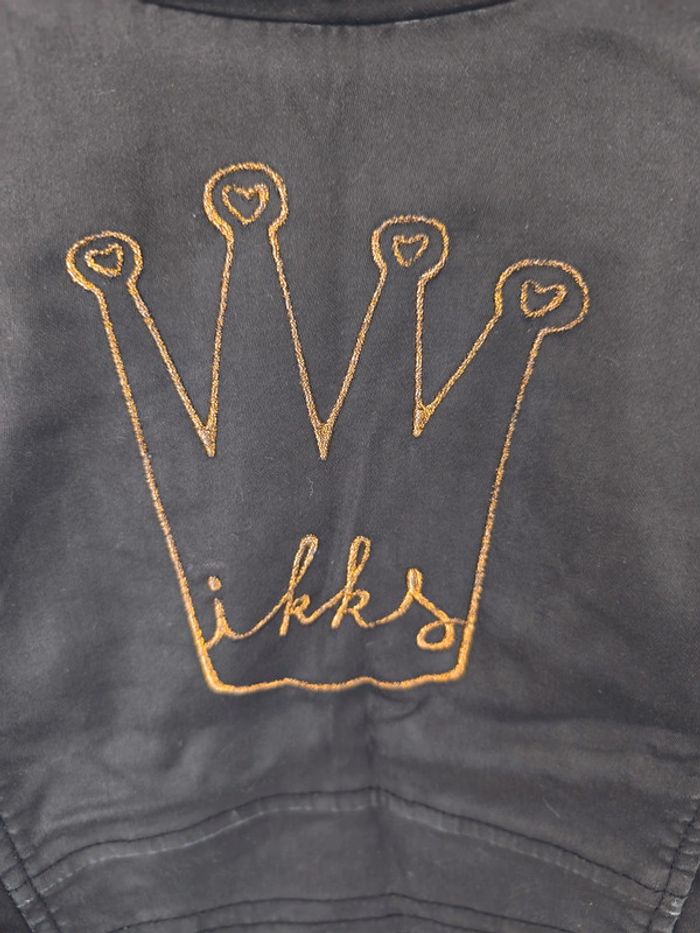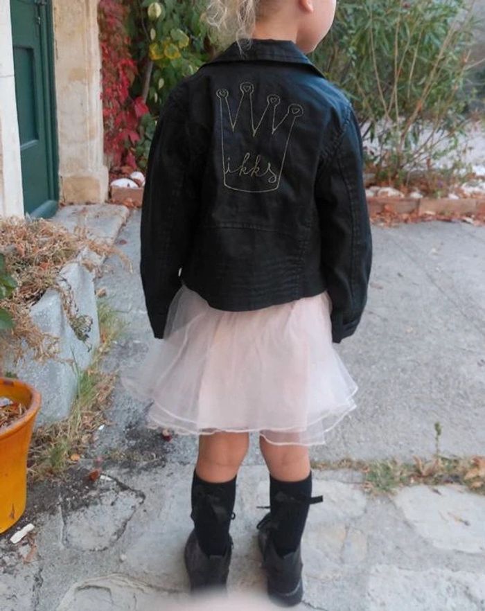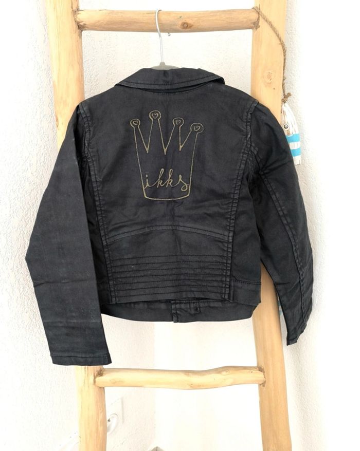 Blouson Perfecto IKKS tissu enduit motif couronne dorée dos, doublée léopard rouge blanc #loulaliefille6ans dans la recherche pour voir tout mon 6 ans Kiabi seconde main ou beebs possible