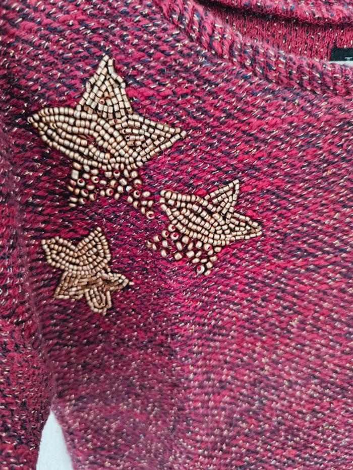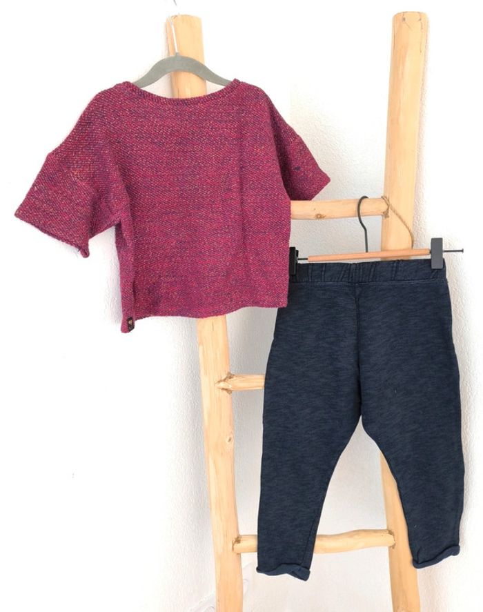 Ensemble 2 pièces : pull IKKS 5 ans bordeaux fils dorés , étoiles en perles taille plutôt grand Pantalon Sarouel Zara bleu marine , noeud noir a la taille #loulaliefille5ans #loulaliefille6 ans dans la recherche pour voir tout mon 5 ou 6 ans Kiabi seconde main ou beebs possible