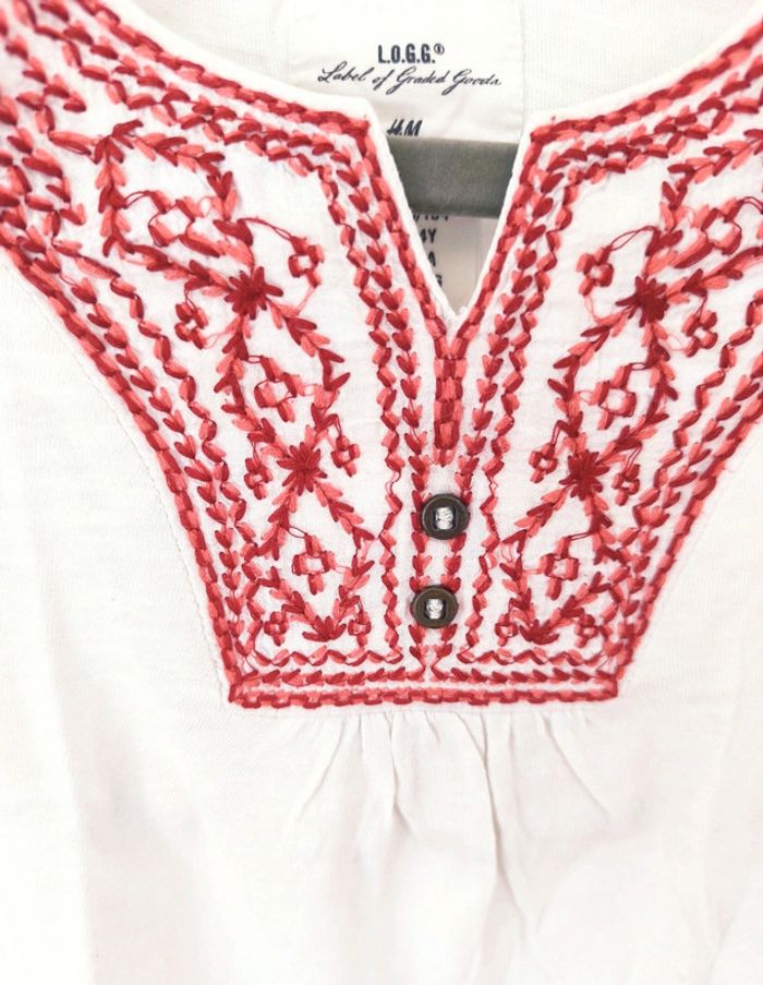 T-shirt tunique H et M manches longues blanc broderie rouge au col #loulalie4ansfille dans la recherche pour voir mon 4 ans fille Kiabi seconde main possible