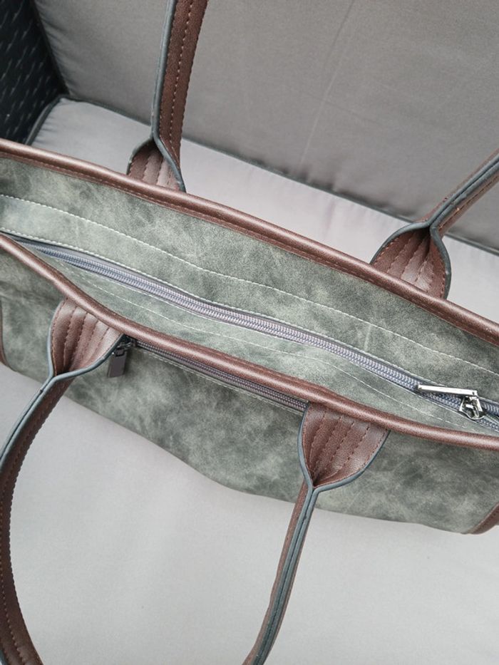 Sac fourre tout, couleur gris et beige - photo numéro 6