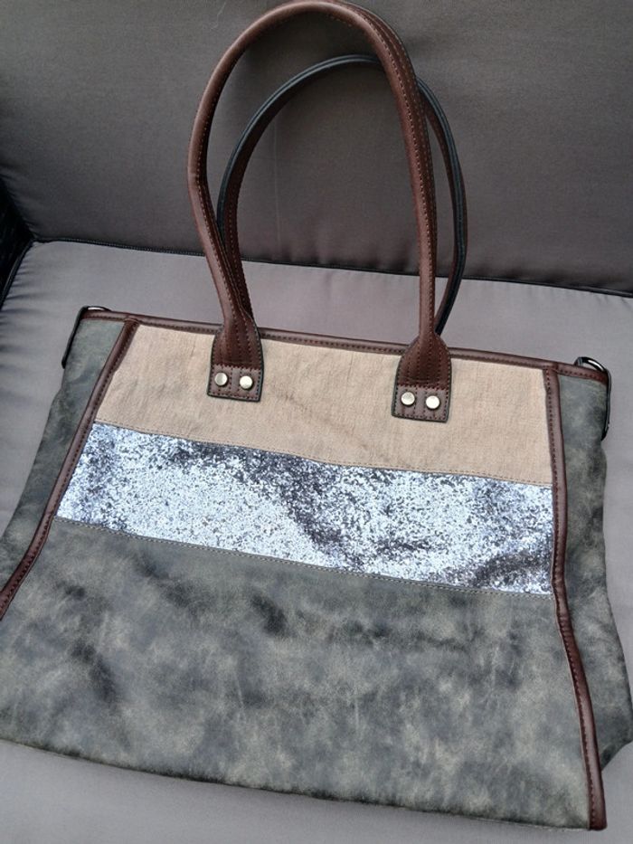 Sac fourre tout, couleur gris et beige - photo numéro 3