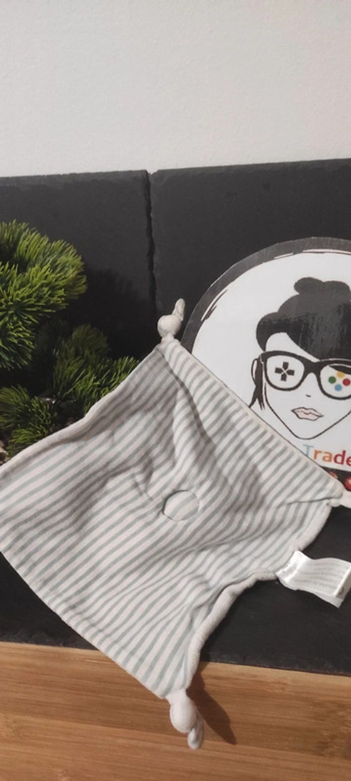 doudou lapin blanc bleu carotte orchestra carré noeuds rayé rayure - photo numéro 1