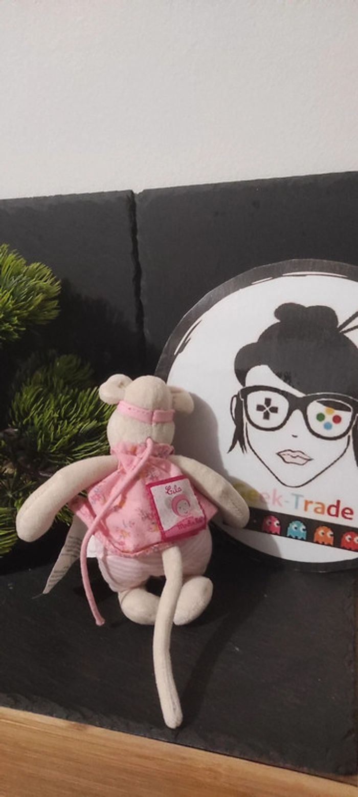 doudou peluche souris moulin roty lila rose fleurs rayure noeud blanc beige Robe