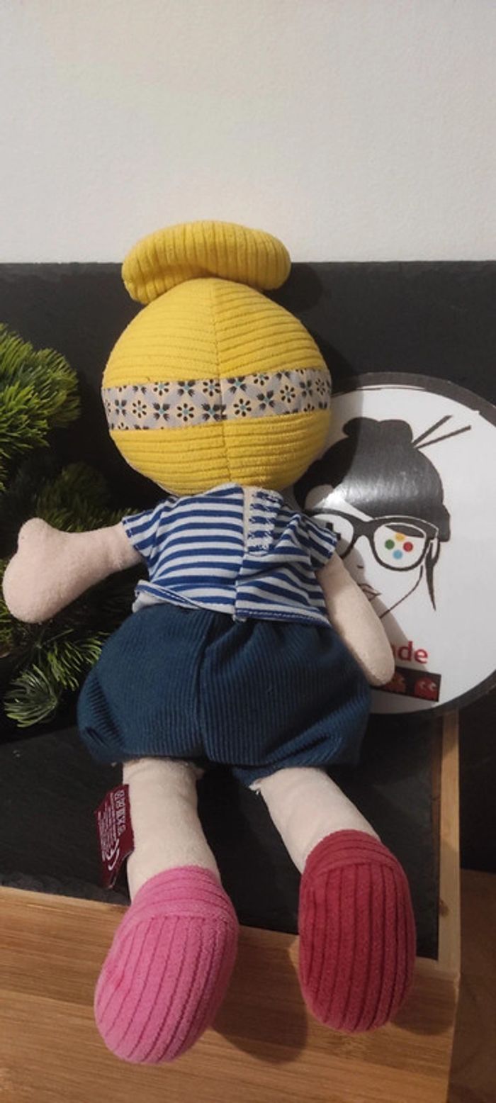 doudou poupée les mistinguette colette blonde coeur bleu rayure short marin rayures bandeau plush doll globetrotoys Bel état Afin de ne pas abîmer les doudous et de laisser le choix dans l'utilisation de la lessive les peluches ne sont pas lavées avant envoi Description complément : Petit nettoyage à prévoir Vous achetez ce que vous voyez les photos font entièrement partie de la description #geektradeglobetrotoys Transport : Les frais de transport comprennent les frais du transporteur ainsi que l'emballage pour protéger au mieux votre achat. Chaque achat est envoyé en format colis avec numéro de suivi Le poids du colis est de 500g finit (je ne peux pas faire moins) il peut donc y avoir plusieurs objets dans le carton si vous le souhaitez (contactez moi afinde grouper les frais de port) Référencement : #geektradedoudou #peluche #plush  #doudou #enfa