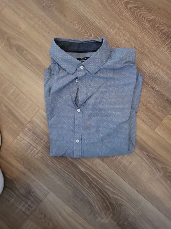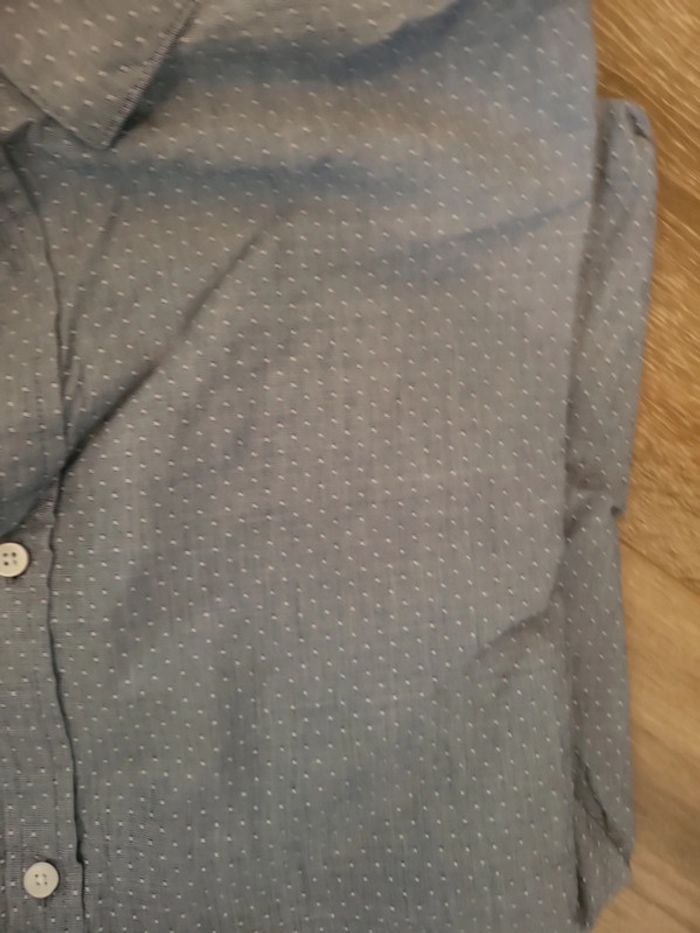 Chemise bleue/ gris neuve juste lavée xxl motif pois blanc - photo numéro 3