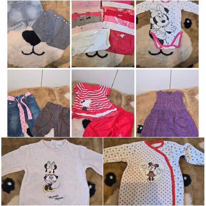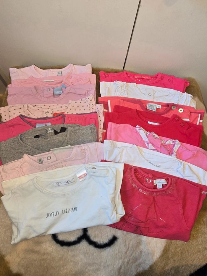 Lot 24 vêtements en 6 mois fille : • 2 pyjamas • 1 body • 2 pantalons • 2 shorts • 1 ensemble • 1 robe • 15 hauts manches longues Plutôt automne/Hiver