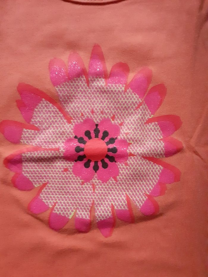 Tee shirt orange motif  fleurs rose - photo numéro 2