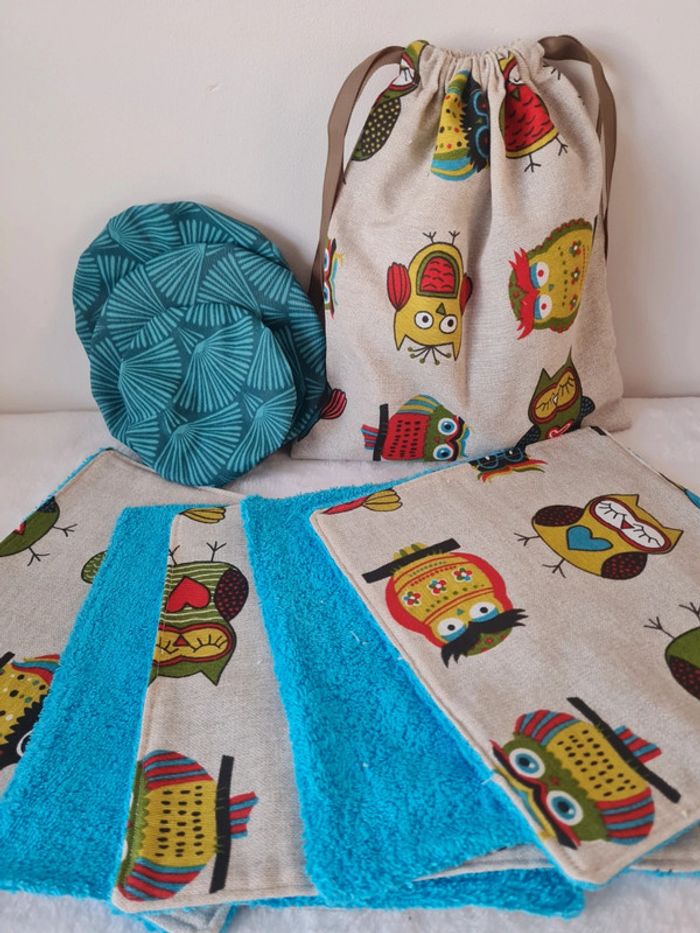 3 charlottes alimentaires lavables En coton enduit imperméable et qui va empêcher les odeurs des aliments de se rependre dans le frigidaire. S'adaptent à tous bols, plats ronds et saladiers. Lavage à 40°c à la main ou en machine. Ne passe ni au four ni au mocro-onde. 1 taille S pour plat de 11 à 15 cm de diamètre 2 tailles M pour plat de 16 à 24 cm de diamètre 1 pochon 24 cm x 29 cm 5 feuilles d'essuie-tout lavable sans pression Carré de 24 cm x 24 cm Fabrication artisanale #tyjalel29400_ensemble #tyjalel29400_Essuietoutlavable #tyjalel29400_Charlottealimentaire