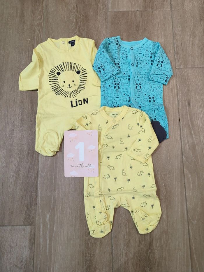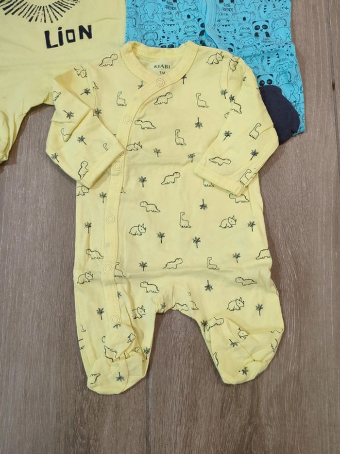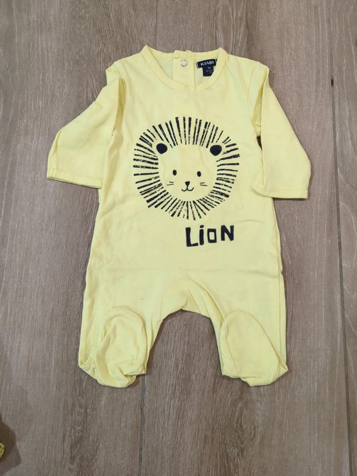 Lion : Kiabi jaune vif, 1mini tache orange sur jambe droite Dinosaure : Kiabi jaune vif Bleu : in extenso, un peu décoloré au niveau des boutons ( ne se voit vraiment pas )