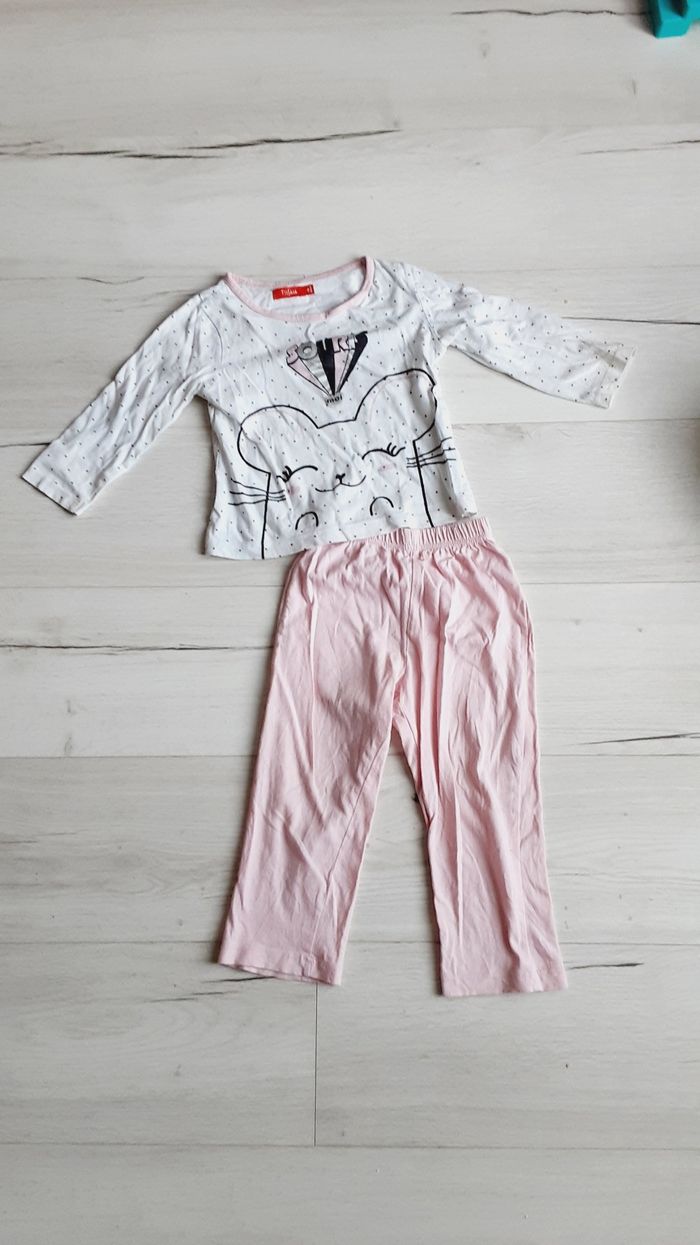 Vêtement fille pyjama rose et blanc souris Tissaia 3 ans - photo numéro 1