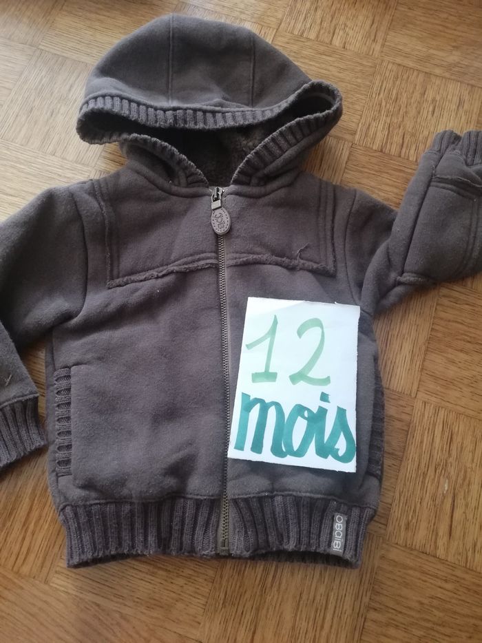 Veste obaïbi garçon 12 mois marron fourré à capuche - photo numéro 1