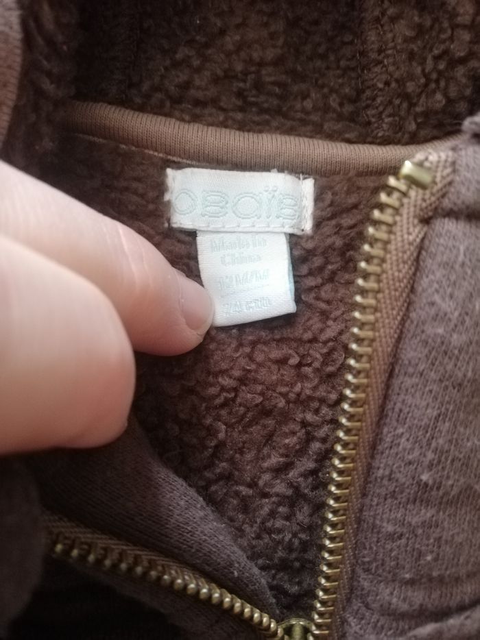 Veste obaïbi garçon 12 mois marron fourré à capuche - photo numéro 3
