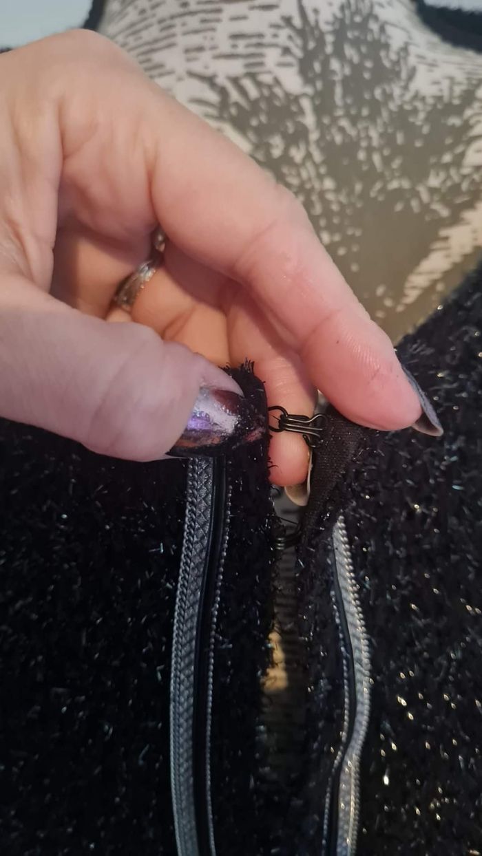 Neuf dans étiquette. Très doux. Brillant. Noir et argenté. Fermeture par agrafe voir photo. Envoi rapide.