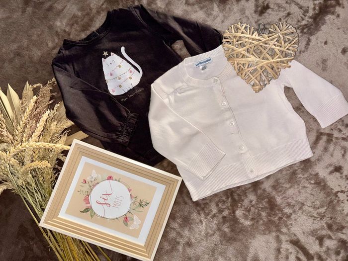 Ensemble hauts manches longues pour filles en six mois : • haut manches longues • gilet, rose pâle