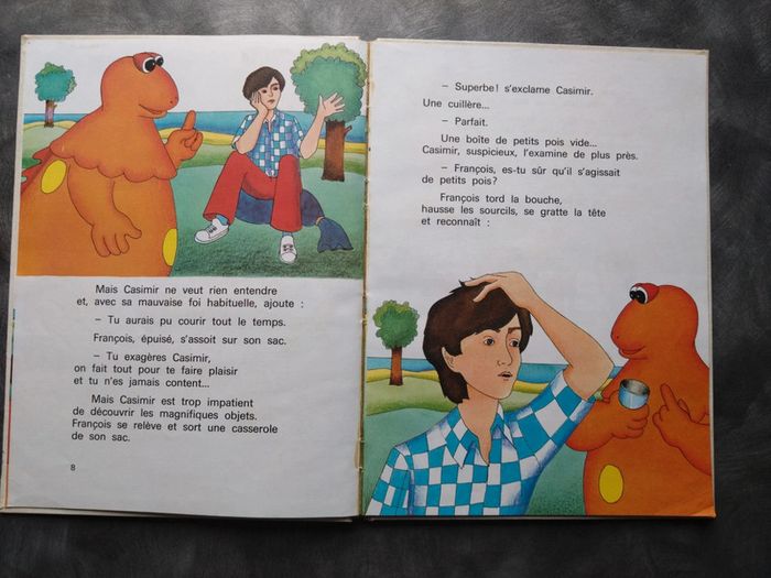 Livre ancien du célèbre dinosaure orange Casimir. Éditions jean chapelle, 1979. Quelques traces d'usure sur les couvertures principalement et de très très légères taches jaunâtres sur quelques endroits à l'intérieur mais vraiment très très peu et ne gênent pas la bonne lecture du tout. Deux pages sont très légèrement abîmées en bas dans le coin, elles ont dû être mal mises au moment de fermer le livre à un moment sans faire attention. #jeremyamaha_LIVRE_ENFANTS_ANCIENS