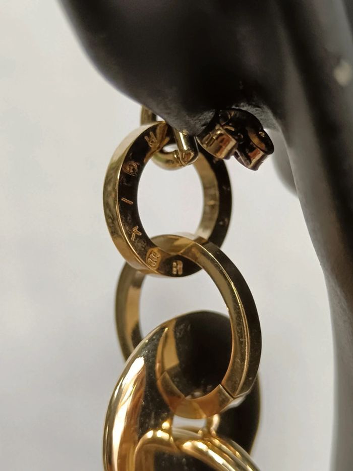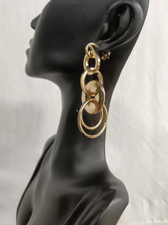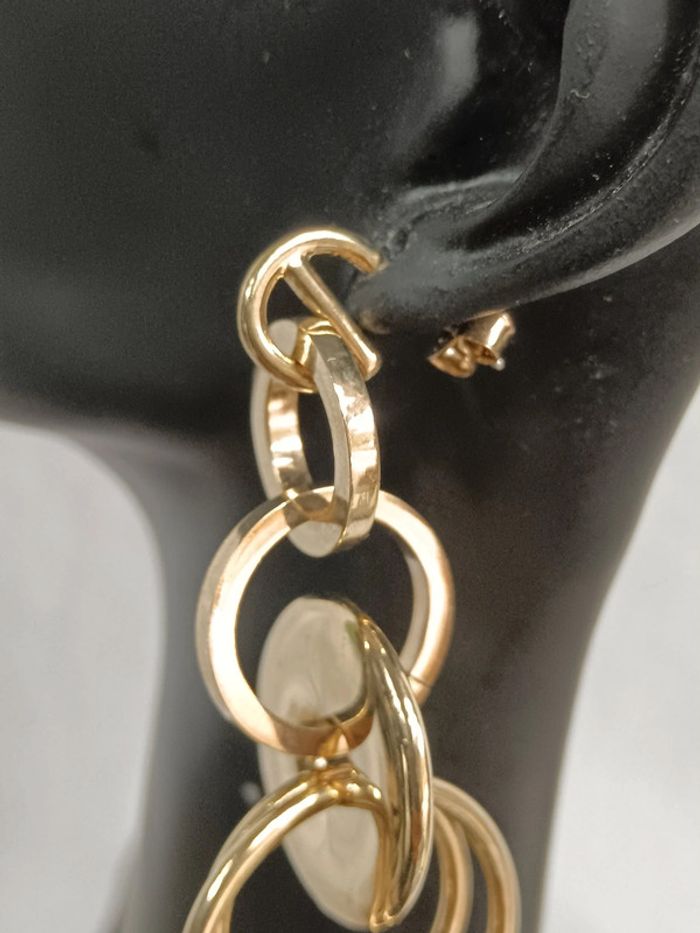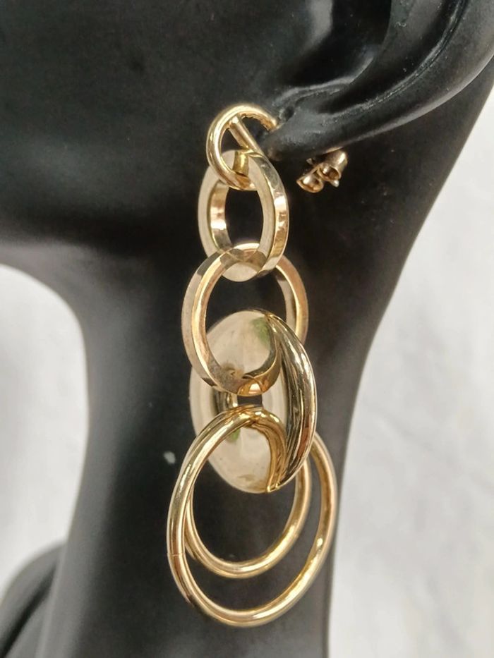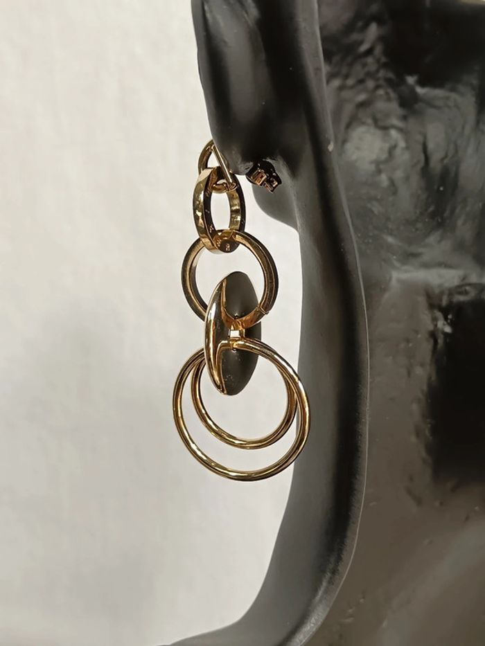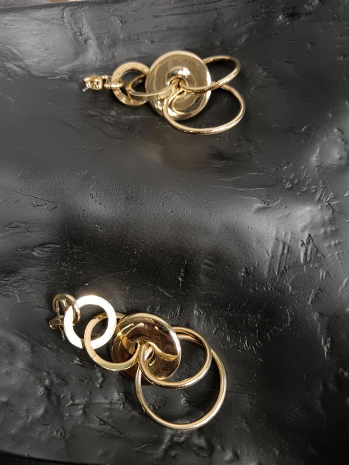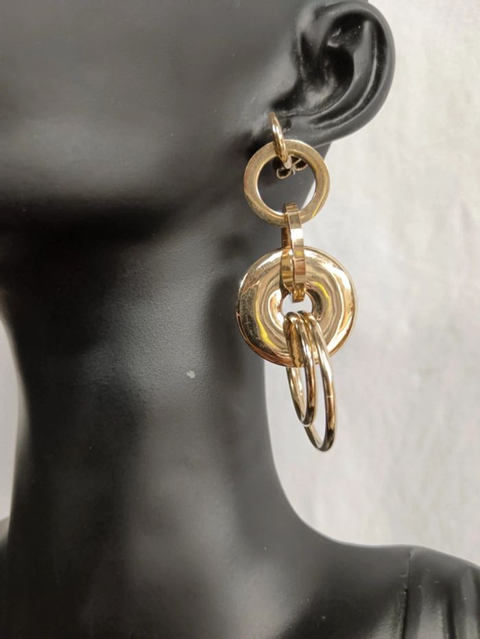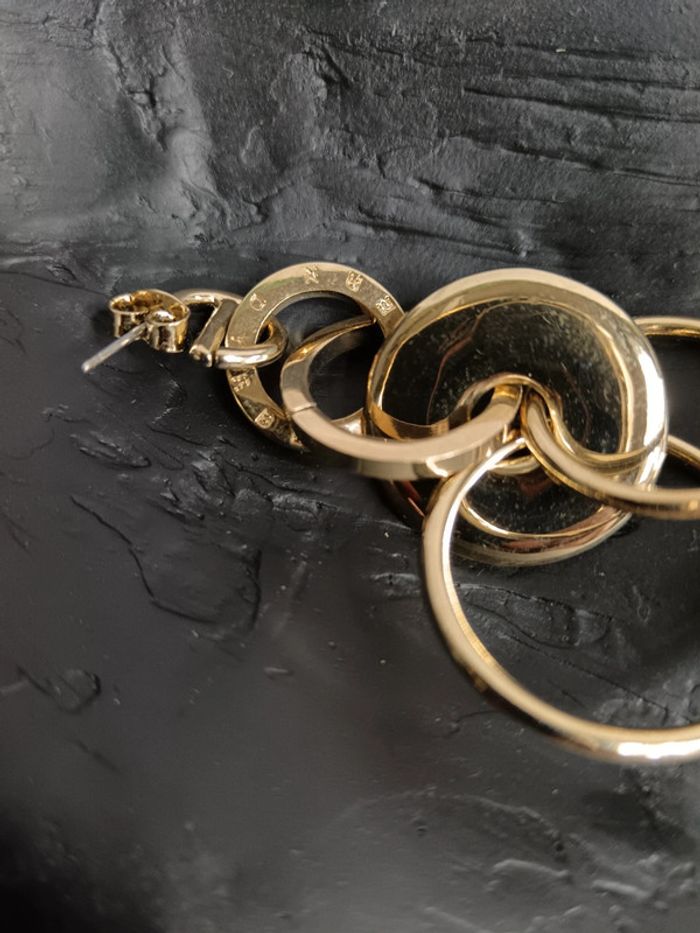 Boucle doré pendantes dorés de chez Dyrberg Kern. Anneaux entrelacés pendants. En excellent état 7cm de long et 3cm au plus large #calmbijoux #bouclesdoreillespendantes