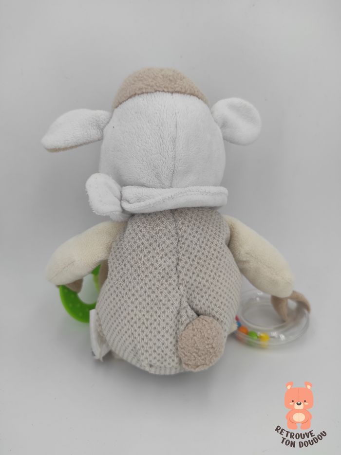 🐮 Peluche d'activité doudou vache crème et blanche avec bandana autours du cou, Mots d'Enfants Anneau hochet et anneau de dentition 📏 Dimension : 26 cm environ ✨ État : Occasion, très bon état 🧼 Lavé avec lessive hypoallergénique 👀 Vous achetez le doudou que vous voyez sur les photos.