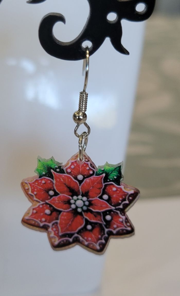 BOUCLES D'OREILLES FLEUR DE NOEL POINSETTIA ! NEUF ! - photo numéro 2